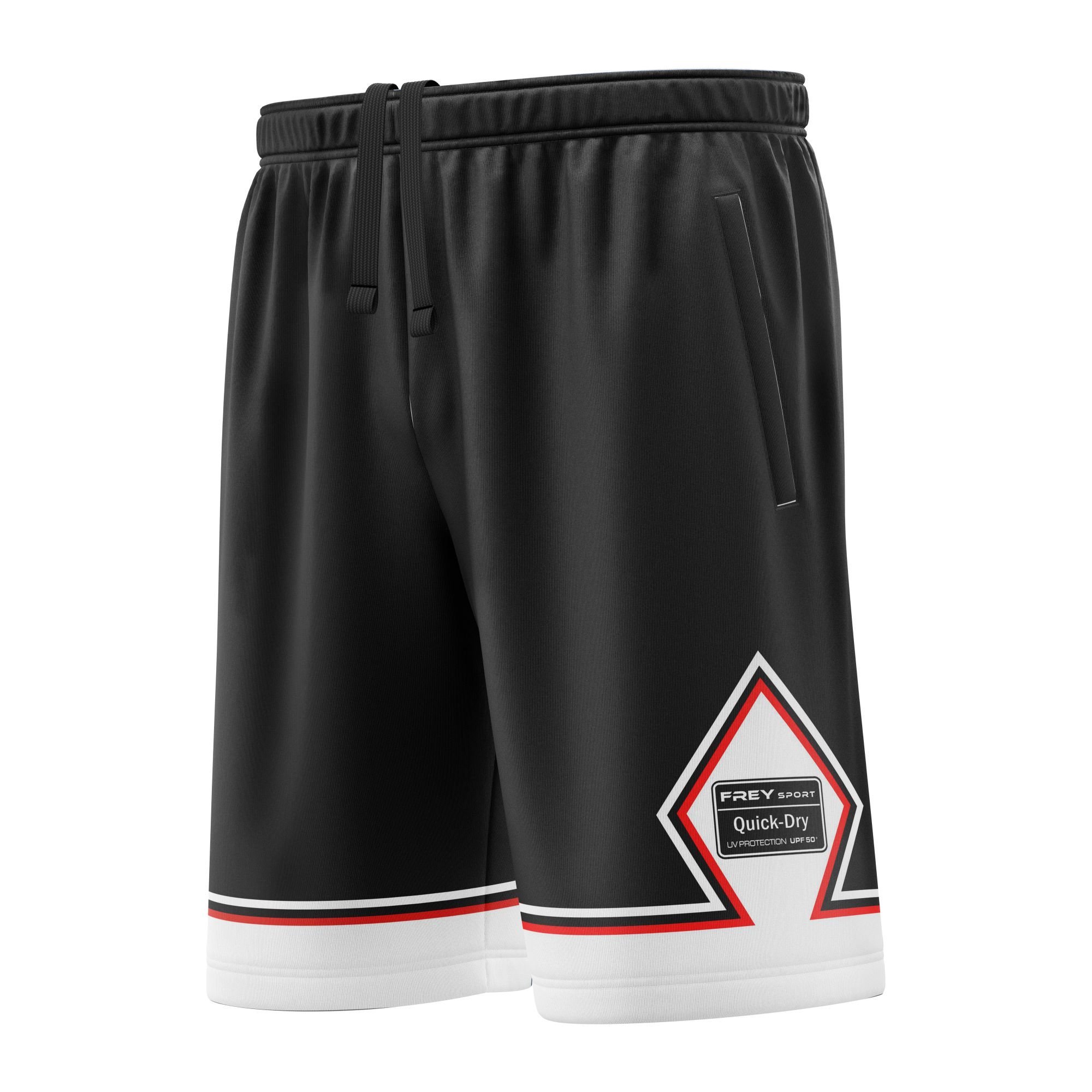 Freysport Günlük Giyim Şortlarımızda birer adet Ön sağ – sol ve arka sağda olmak üzere toplam 3 adet fermuarlı cep standart olarak mevcuttur.  Bel kısmı lastikli ve ekstra ip mevcuttur. Bütün ürünlerimiz en üst kalite %100 polyester kumaş üzerine süblimasyon baskılıdır. Bu baskı yöntemi sayesinde tüm desenler kumaşa işler ve baskılar kumaştan hiçbir şekilde çıkmaz ve solmazlar.