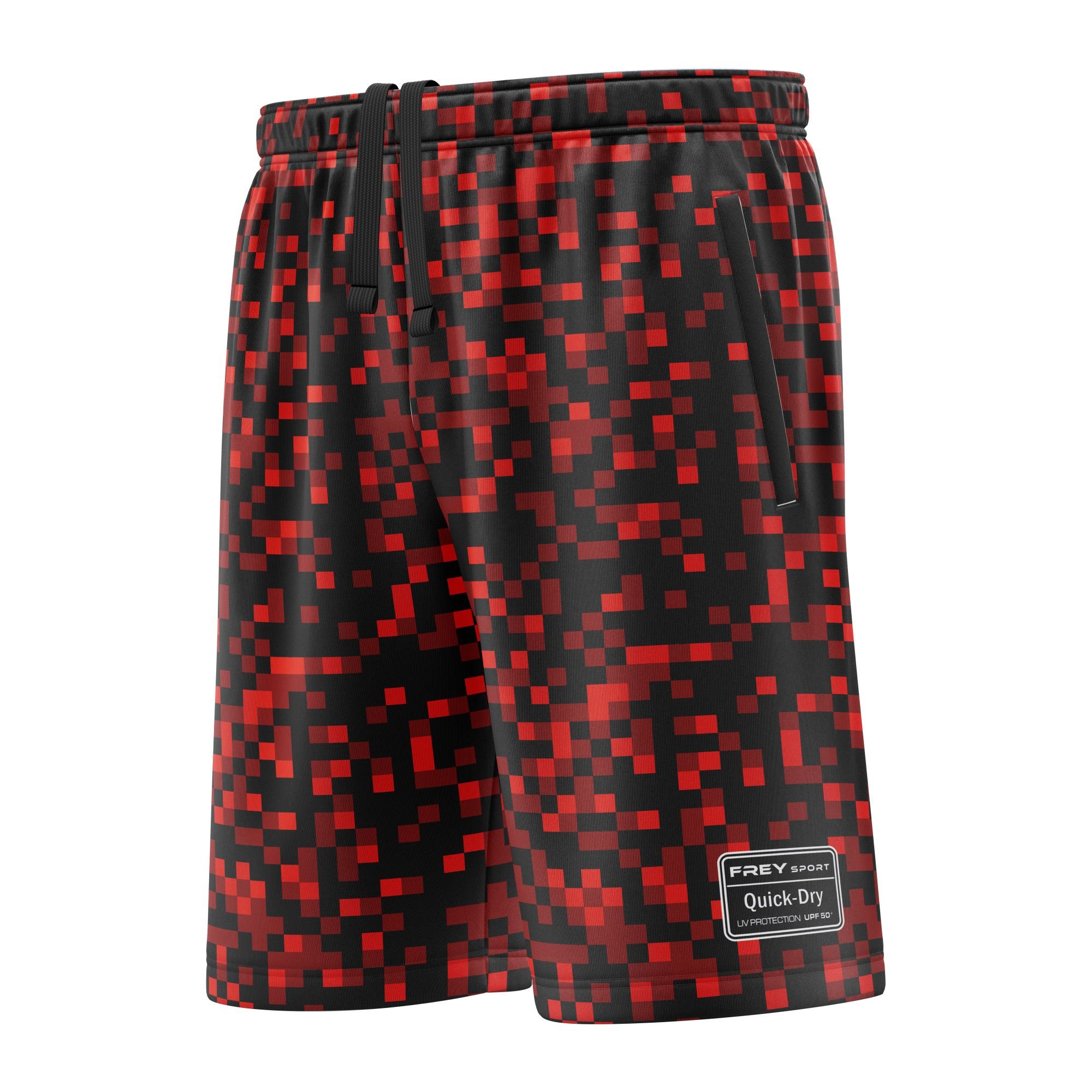 Freysport Günlük Giyim Şortlarımızda birer adet Ön sağ – sol ve arka sağda olmak üzere toplam 3 adet fermuarlı cep standart olarak mevcuttur.  Bel kısmı lastikli ve ekstra ip mevcuttur. Bütün ürünlerimiz en üst kalite %100 polyester kumaş üzerine süblimasyon baskılıdır. Bu baskı yöntemi sayesinde tüm desenler kumaşa işler ve baskılar kumaştan hiçbir şekilde çıkmaz ve solmazlar.